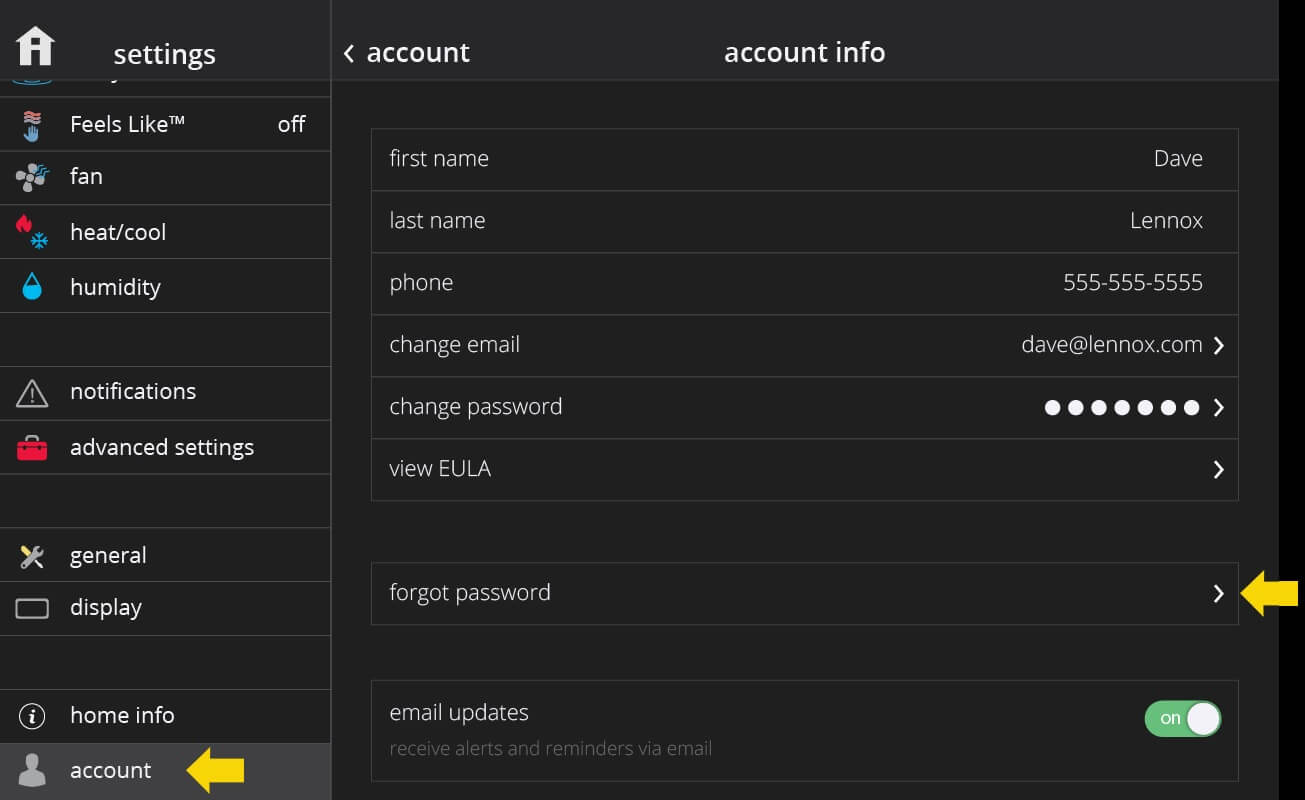 Once you have created an iComfort® S30 account and your are signed-in on the thermostat, you’ll be able to use the Lennox Home App and web portal to control your thermostat remotely from anywhere. To sign in on the thermostat, go to menu > settings > account.