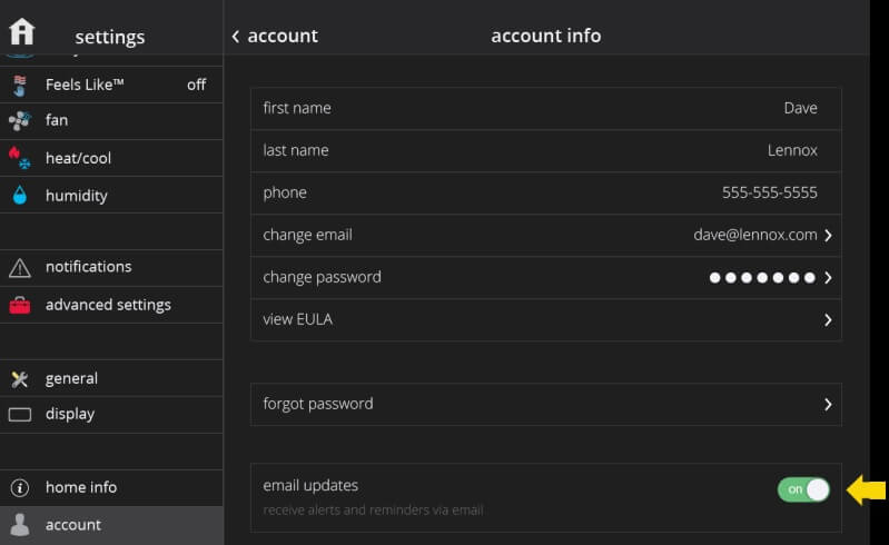 And it is located here on the Lennox Home App: